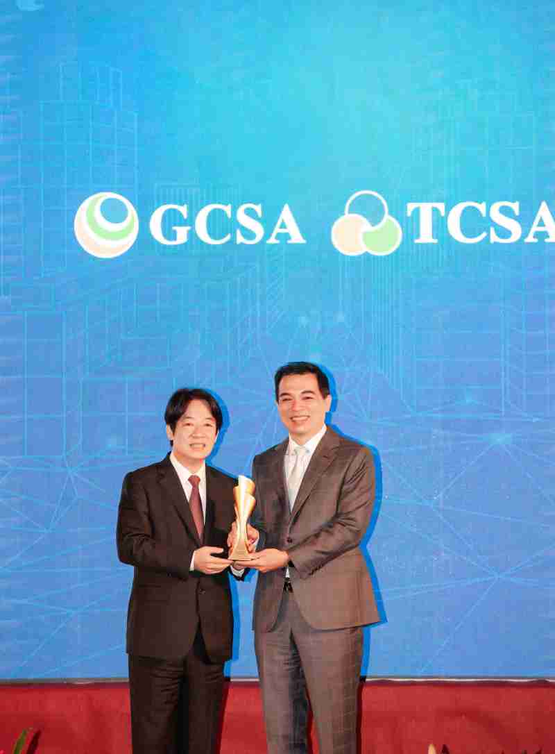 达全方位永续表现获全球永续奖及台湾永续奖肯定,,,由副总统赖清德颁奖 (左),,,,云顶国际8588yd总经理柯富仁 (右) 代表领奖
