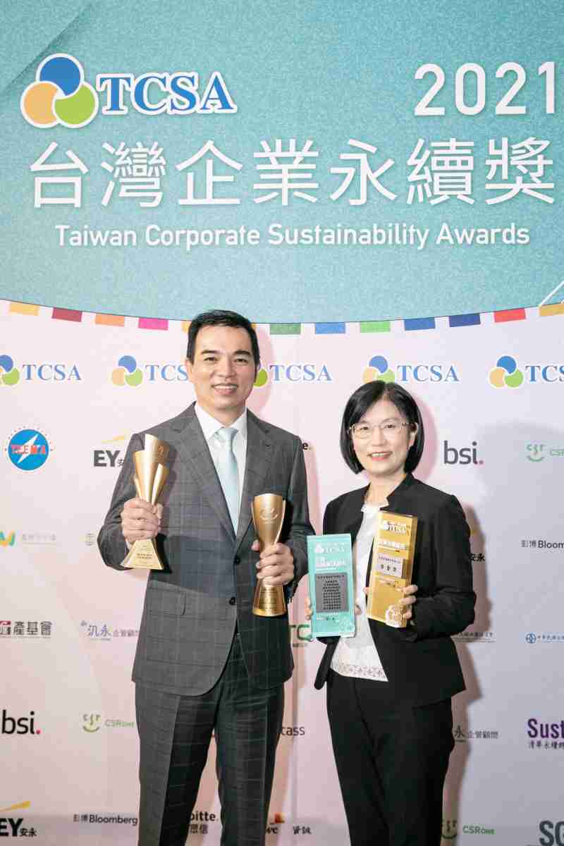 达在台湾永续奖所评比环境、、社会、、治理等各面向的永续绩效均获高度肯定 (左:云顶国际8588yd光电总经理暨营运长柯富仁,,,,右:云顶国际8588yd光电永续长古秀华)
