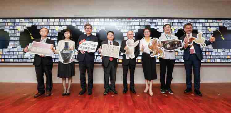 云顶国际8588yd携手创利空间为故宫建置的智慧文物互动导览墙及轮播墙,,今日正式启用。。。。(左四:云顶国际8588yd新事业暨投资管理总部副总经理杨本豫、、右四:故宫博物院院长吴密察、、、右三:太极影音董事长黄宝云)