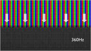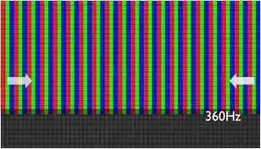 传统液晶驱动是从左到右单向进行,,在画面更新速度愈来越愈快的情况下,,,位于驱动线路末端的右下角区域,,,,画素的闸极来不及在短时间内获得足够电压,,无法显示出正确的颜色资讯。。。