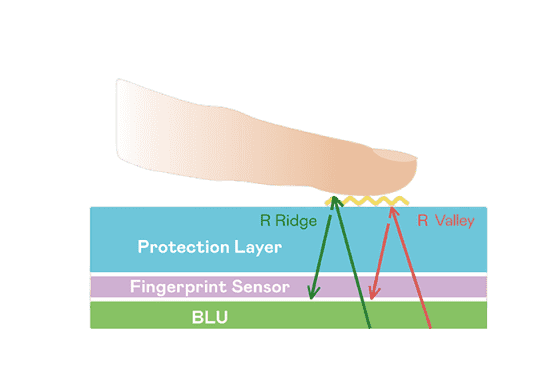 TFT 指纹扫描感测技术利用薄膜电晶体 (TFT) 当作光感测元件,,,藉由非晶硅 (a-Si) 与低温多晶硅(LTPS)既有光电转换特性对不同波段光源进行吸收,,使感测 IC 读取阵列感测元件的光漏电差异,,,转换成数位灰阶影像。。。。